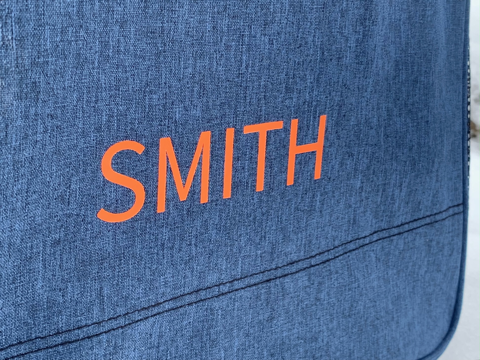 Our classic ski boot bags with your customized name – up to 10 characters–as written by you in font seen in images. Great for identifying your gear, for families, teams and travel! Durable nylon iron on name tag